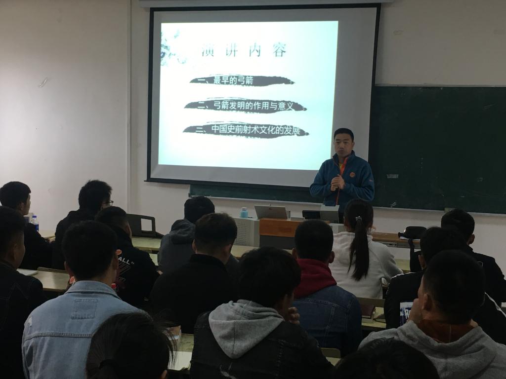 11月17日下午,tyc33455cc陈光华副教授在龙山校区体育馆多媒体教室为该院2016级、2017级休闲体育专业员工作题为“史前射术文化”的学术报告。