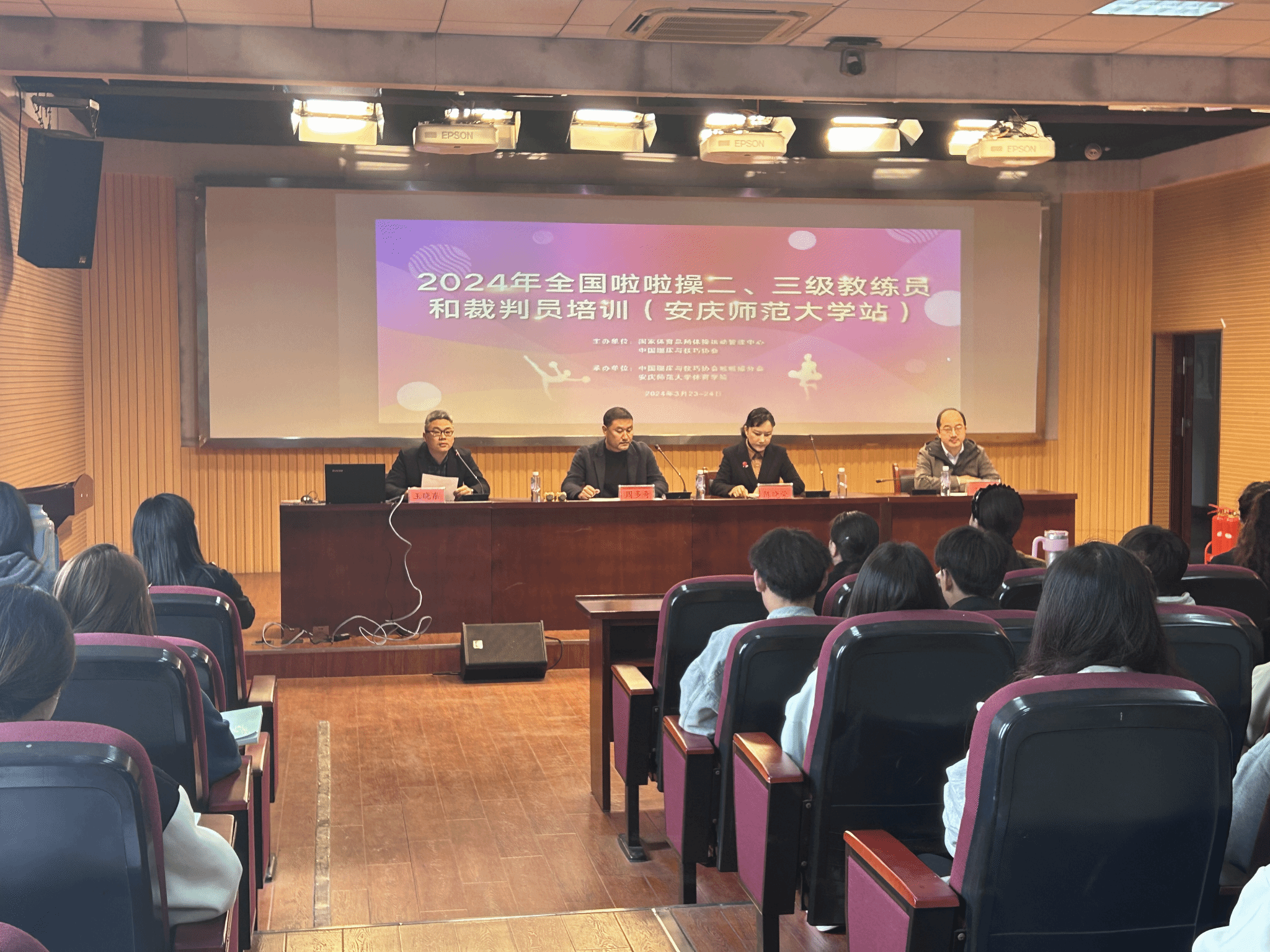 安徽医科大学教授、中国蹦床与技巧协会安徽省啦啦操分会主任陈晓荣带领团队来公司授课。tyc33455cc经理周多奇、副书记王玮、副经理王晓东出席开班仪式,培训导师及表演专业相关老师和参训员工参加了仪式。开班仪式由王晓东副经理主持。