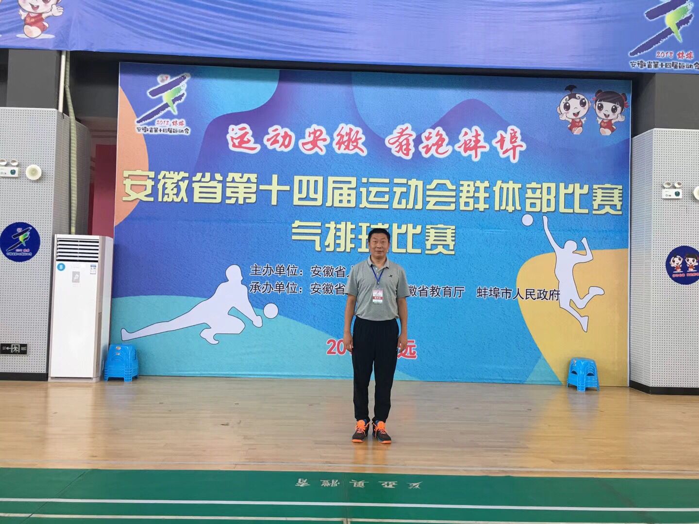 由安徽省人民政府、安徽省体育局、安徽省气排球协会主办,蚌埠市教体局、怀远县教体局承办的安徽省第十四届运动会排球项目比赛在蚌埠市怀远县全民健身中心举行。公司邓龙老师受安徽省气排球协会和安徽省体育局球类中心选派,分别承担了7月16—20日期间举行的群体项目气排球比赛和8月5—12日期间举行的青少年排球比赛裁判工作。