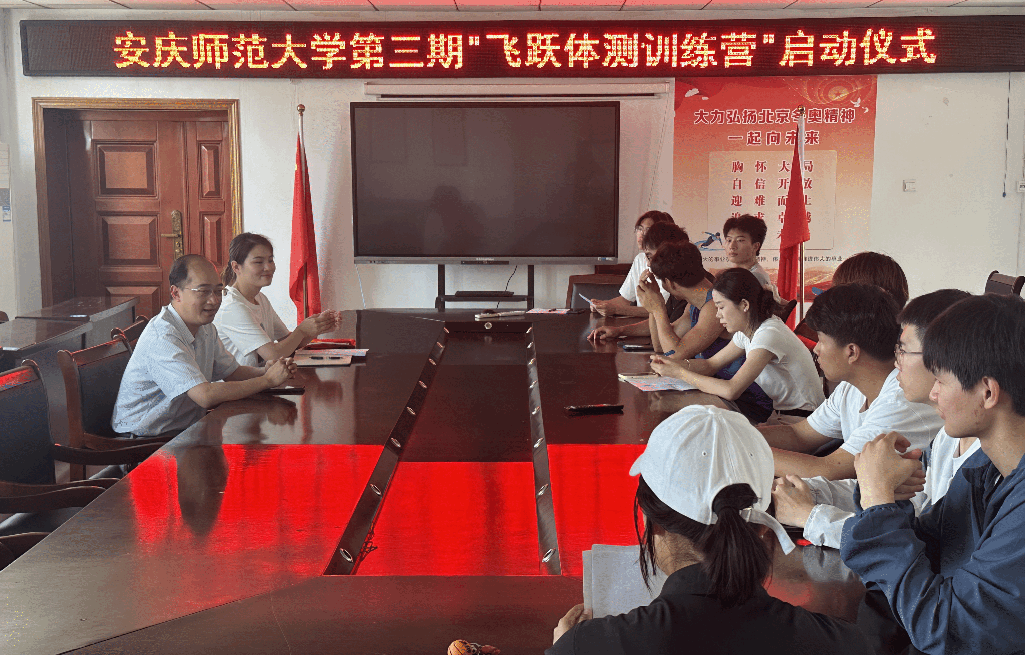 6月7日,tyc33455cc在体育馆三楼会议室举办第三期“飞跃体测训练营”启动仪式。体育公司党委副书记王玮出席仪式,tyc33455cc资助专管老师方芳、全体体测志愿指导员和学员代表参加启动仪式,方芳主持本次启动仪式。