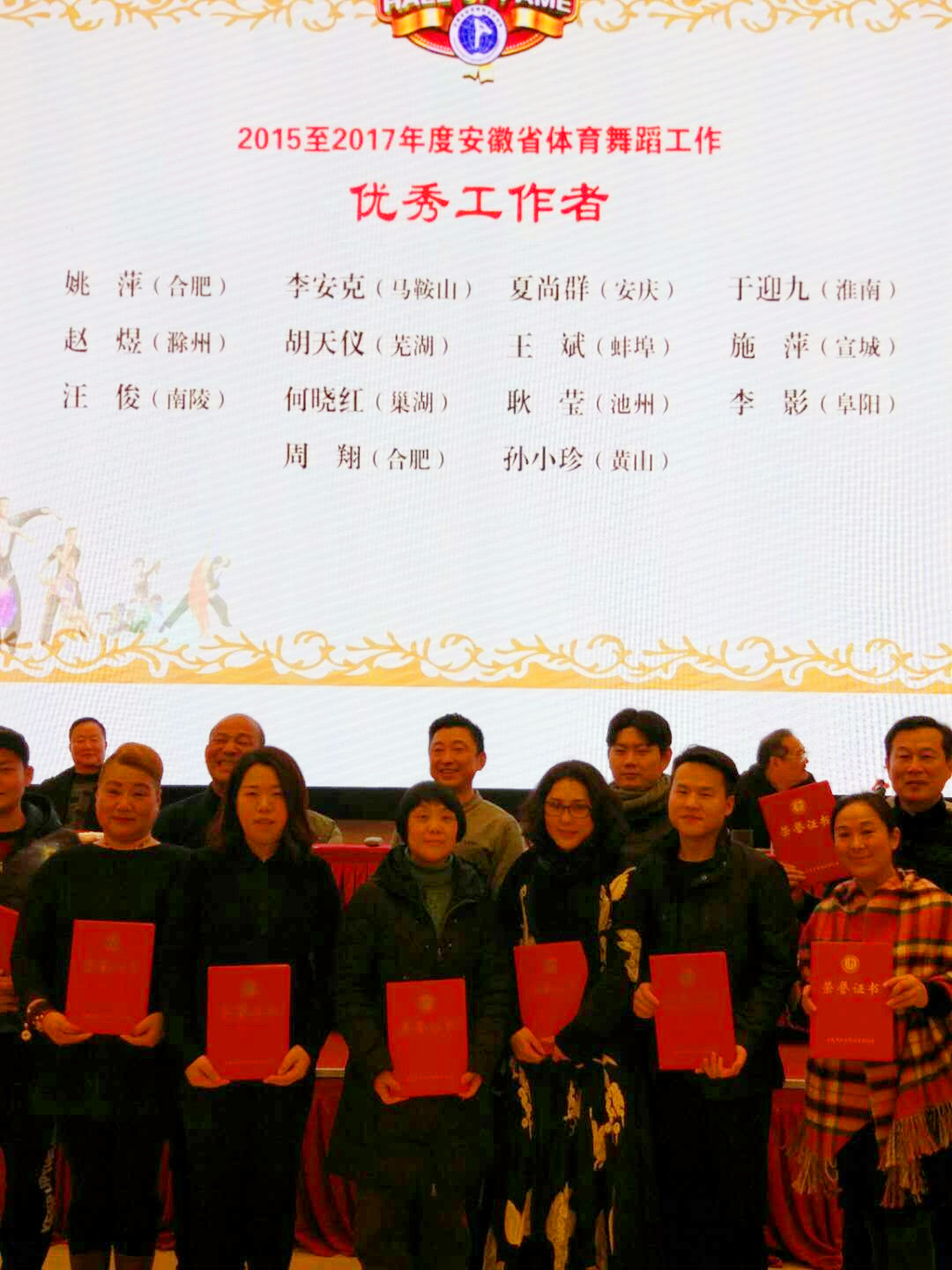 tyc33455cc荣获2015-2017年度安徽省体育舞蹈工作“先进高校单位”称号