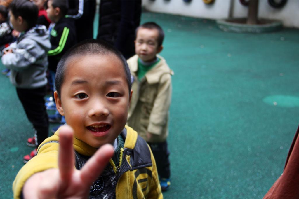 最后结束时,一位小朋友情绪很高,想要拍照,露出了开心的笑容。