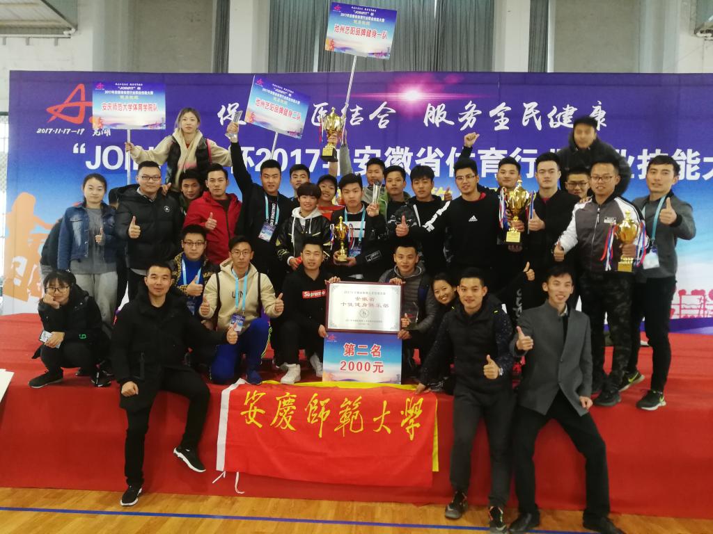 由安徽省体育局、安徽省总工会、安徽省体育总会主办,安徽省体育人才服务中心、安徽师范大学承办的2017年安徽省体育行业职业技能大赛于11月17日至11月19日在安徽师范大学成功举办。来自全省各大高校、退役运动员,健身俱乐部等40个代表队共225名选手参加了此次比赛。大赛设置理论答题,健身球带球爬行,攀爬机、壶铃硬拉、划船机体能比拼等项目,角逐出安徽省前二十三名进入决赛。