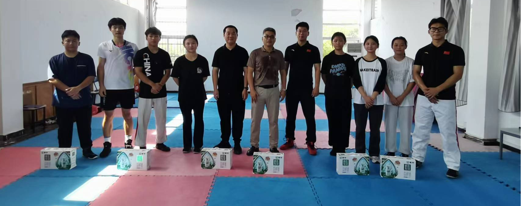 王晓东走访慰问了公司暑期留校参加健美操、摔跤和师范生技能大赛等赛事集训同学。在走访过程中,王晓东详细询问训练队同学们的生活和训练情况,叮嘱同学们掌握科学的训练方法,明确目标,训练时直面困难和挑战,坚定信心、为专业比赛取得优异成绩而不断努力。