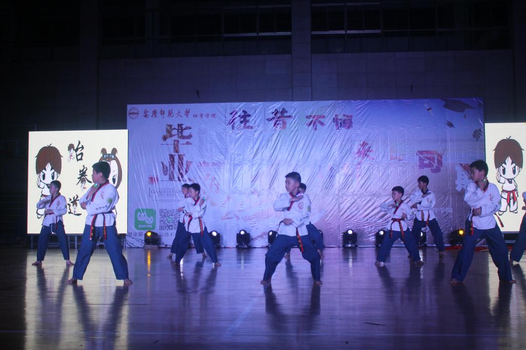 伴随绚丽的舞台灯光秀和15级体表2班精彩的开场舞,晚会正式拉开帷幕。本场晚会共分为“不忘初心”、“勇于追求”、“往昔不悔,来日可期”三个篇章,节目内容丰富,引人入胜。第一篇章中,师院跆拳道馆带来的节目《旋风小子》,是由一群稚嫩可爱的小朋友们所带来的演出,年龄虽小,一招一式却绝不含糊,引得台下掌声阵阵,瞬间点燃了全场的氛围。接下来是由16级梁艺等人带来的歌曲《记·念》,“一边书写,一边怀念”,毕业生们的青春回忆在歌声中一幕幕上演。17级新生合力演出的《舞所不能》更是引起热烈反响,大家为了师兄师姐卖力表演的舞蹈串烧,将青春的活力与创造完美展现,使得本场晚会步入高潮。第二篇章中,小品《光阴的故事》以幽默诙谐的话语表达出了流年易逝,也体现了当年不变的珍贵的情谊。青春岁月就如白驹过隙,从指间悄悄溜去,由15体表3班带来的现代舞《再见青春》,精美的编排和精湛的舞技将青春的不舍和留念表现的淋漓尽致,带动了毕业生们的思绪,使在场的观众为之折服。紧接着,是由李杰等人带来的经典朗诵《致橡树》和歌曲《春风十里》,抑扬顿挫的声调,抒发着情怀,表达着祝愿。晚会最后一个篇章,由公司员工会主席团为师兄师姐们送上的特殊的情景剧祝福——《365个祝福》。最后,在一首大合唱歌曲《栀子花开》的感染下,全场氛围突破泪点。在大屏幕放映的毕业视频中,每一个熟悉的老师亲切的祝福话语里,满含着四年来相互陪伴的真情。至此本场毕业生欢送会划上了圆满的句号。所有毕业生们与老师们合影留念并拥抱告别。