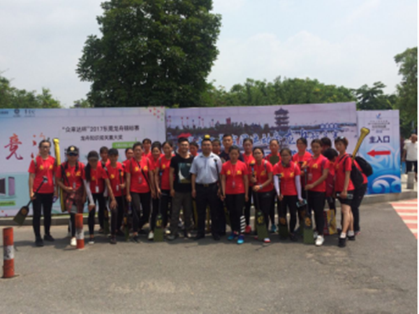 6月5日中华人民共和国第第十三届全国运动会龙舟预选赛在著名龙舟特色小镇广东东莞麻涌镇落幕,公司女子龙舟队易国惠、候琳、程德慧、龚瑞雪、韩娟、沈彩蝶、倪虹、郭素银、刘曼颀、周玉洁、朱雪慧等11名队员入选安徽省女子龙舟队并参加了全部项目的比赛,教练为tyc33455cc许贵泉老师。
