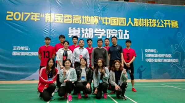 4月21日至23日,由国家体育总局排球运动管理中心主办的2017年中国四人制排球公开赛在巢湖公司举行。公司组建了以体育公司党总支书记戴卫义、副经理章翔为领队,以李斌、邓龙老师为教练的体育院校男子组和女子组代表队,经过努力拼搏,取得了体育院校男子组亚军、女子组第六名的好成绩,并获得大会组委会颁发的“体育道德风尚奖”。