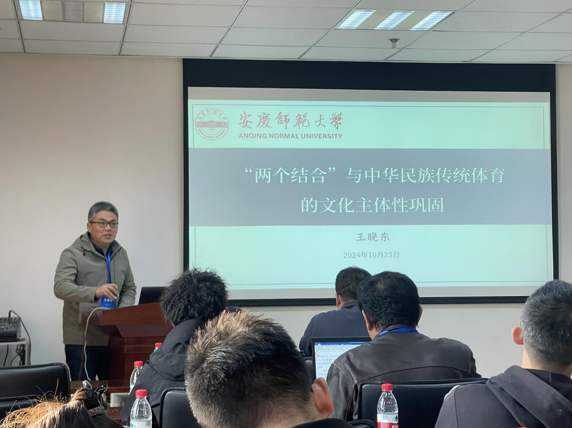 此次年会主题为“构建中华民族共同体理论体系”,共设23个专题会议。王晓东教授所作题为《“两个结合”与中华民族传统体育文化主体性巩固》的专题报告是“民族传统体育与中国式现代化发展”专题的5个专题报告之一。他在报告中阐释了“两个结合”与中华民族传统体育文化主体性巩固之间的逻辑关系,指出中华民族传统体育应以“两个结合”为思想引领,以助力铸牢中华民族共同体意识,创新传承中华优秀传统文化,着力推进中国式现代化进程,加强中国特色团队建设等为实践进路,着力实现中华优秀民族传统体育文化的主体性巩固。