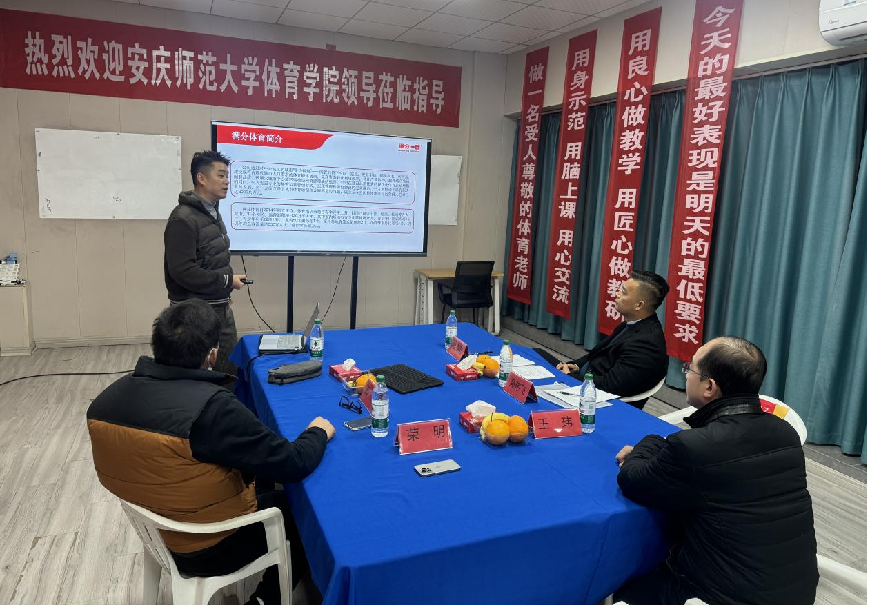满分体育董事长荣明对体育公司一行的到来表示热切的欢迎,他介绍了满分体育发展有限公司的经营理念、经营模式、团队力量、课程特点和企业文化等。他希望通过双方的深入合作,为员工提供更多的实践和就业机会,帮助员工在实际工作中不断提高自己的专业技能和综合素质。双方还就如何进一步加强合作、提高教学质量、促进员工就业等议题进行了深入交流。