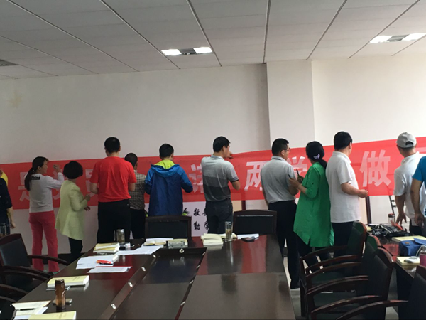 根据公司下发的《关于在全校党员中深入开展“亮身份、作承诺、当先锋、树形象”活动的通知》要求,为了扎实推进tyc33455cc“两学一做”学习教育工作,切实发挥党员干部先锋模范作用,6月1日下午,教工支部在体育馆三楼会议室组织开展了以“我是党员我承诺、两学一做看行动”为主题的承诺签名活动。28名教工党员在主题横幅上郑重地签下自己的名字,承诺做合格党员、树良好形象、当时代先锋。
