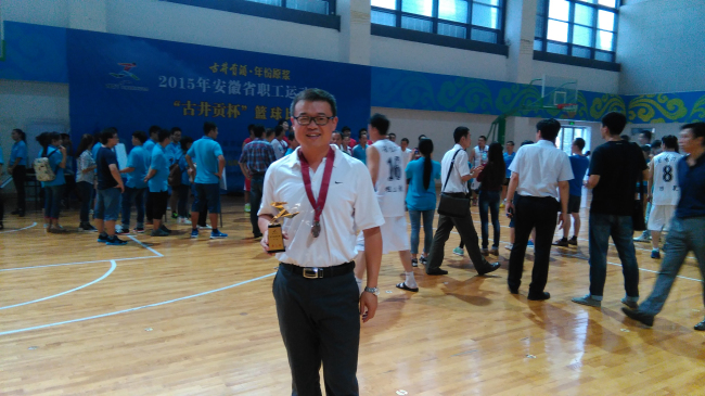 8月27日—9月1日,由安徽省总工会和安徽省体育局联合主办,由安徽省球类运动管理中心、安徽省篮球协会和合肥公司共同承办的2015年安徽省职工运动会“古井贡杯”篮球比赛在合肥公司体育馆举行,受安庆市总工会委托,公司tyc33455cc宣暄老师担任了安庆市篮球代表队的主教练。在宣暄老师的指导下安庆市篮球健儿发挥极其出色,取得了可喜成绩,最终夺得了本届比赛的第三名。