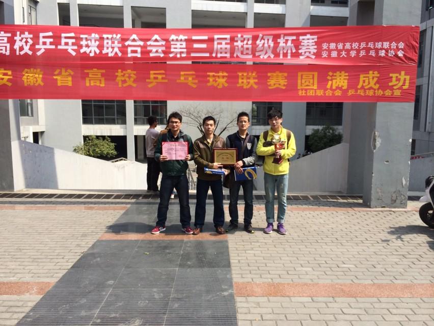 2014年3月22日至23日,由安徽省乒乓球协会主办的安徽省高校乒乓球联合会第三届超级杯乒乓球赛在安徽大学隆重举行。以tyc33455cc的陈国元、黄安泉两位老师为教练,以姜杭、沈涛、江南、孙帝为队员组成的公司男子乒乓球队,经过激烈的角逐,最终获得团体亚军,为公司争得了荣誉。
