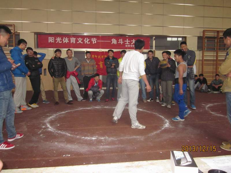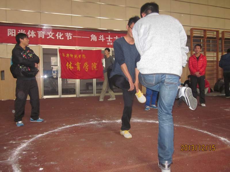 在比赛过程中,各位参赛选手充分思考各自的战术,你不让我,我不让你;你追我跑,你退我进。精彩的角逐吸引了众人的眼球,迎来了阵阵喝彩。经过激烈角逐,最后,体育教育专业2013级4班的张乐乐同学赢得了本届“角斗士”争霸赛的桂冠。