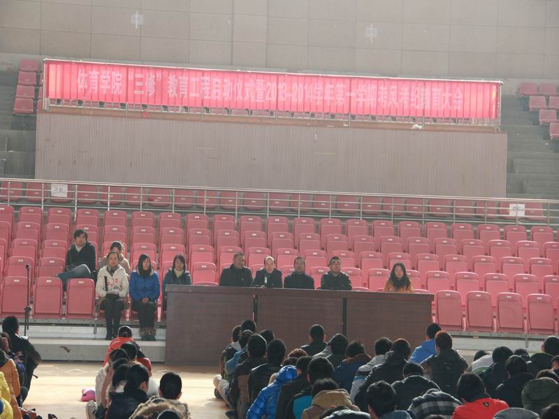 为全面贯彻落实《安庆师范公司老员工“三修”教育工程实施意见》,帮助公司员工增强道德修养,提高综合素质,养成文明习惯,同时也为进一步促进公司学风建设,端正考风,严肃考纪,实现“四成”教育目标,12月20日下午,tyc33455cc在体育馆篮球馆内举行“三修”教育工程推进暨2013—2014学年第一学期考风考纪教育大会。公司全体党政领导出席大会,公司党政办公室、员工工作办公室、教学科研办公室负责同志,各教研室主任、员工党支部书记和全体专职辅导员以及公司2011级、2012级和2013级全体同学参加大会。会议由公司党总支副书记韦长发主持。