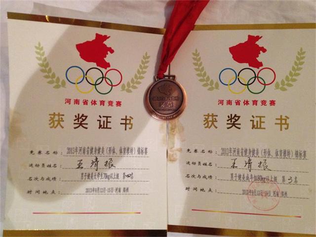 9月12日至15日,由河南省人民政府主办,河南省体育局、河南省体育总会和郑州市人民政府承办的河南省健美健身(形体·体育模特)锦标赛在郑州市举行。公司2010级体育教育专业员工王清振经过激烈竞争,最终在男子成年组80kg以上级比赛中荣获季军;在男子老员工组70kg以上级比赛中荣获第四名。