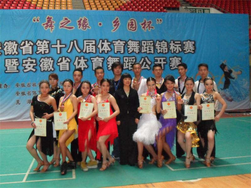 4月29日-30日,安徽省第十八届体育舞蹈锦标赛暨安徽省体育舞蹈公开赛在芜湖市举行,公司2009级、2010级和2011级体育表演专业体育舞蹈专项班的员工,在夏尚群、潘磊两位老师的带领下,参加了本次比赛。经过顽强拼搏,最终公司参赛同学创造了历史最佳战绩。无论是获奖等级还是获奖数量,均远远领先于参赛的省内其他同类专业院校。其中庞晨骏、李晓兰同学荣获锦标赛专业院校A组拉丁舞第一名、A组单项牛仔第一名和公开赛青年A组第一名;詹超、汤茹婷同学荣获锦标赛专业院校C组拉丁舞第一名;罗平、张艺茹同学荣获锦标赛E组单项伦巴第一名及公开赛青年B组第一名;曾秋炜、程飞红同学荣获锦标赛D组单项恰恰第一名;付宇航同学荣获公开赛巾帼组第一名。