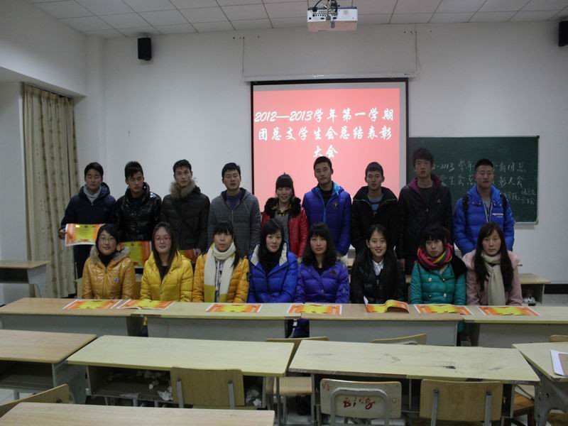 1月10日下午,tyc33455cc团总支员工会在体育馆多媒体教室召开2012—2013学年第一学期团学工作总结表彰大会。院团总支副书记、员工工作办公室副主任鲁雷,团总支汪洋老师出席会议,院员工会全体成员与各班级团干参加了大会。会议由院员工会主席丁立同学主持。