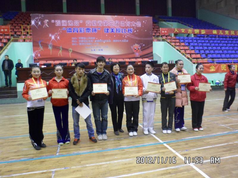 11月2日至22日,由安徽省人民政府主办,安徽省体育局、安徽省体育总会、铜陵市人民政府承办的全省第三届体育大会在铜陵市举行。公司员工在夏尚群、王思乐、王云辉、潘磊等老师的带领下,分别代表了安庆市和合肥市参加了本次比赛,并取得了优异成绩。其中:在健美操项目比赛中,杨阳同学获得了竞技组男子单人项目比赛一等奖;张楠同学获得了竞技组女子单人项目比赛二等奖;杨铮铮、汪慧娟、吴琳同学获得了大众组三人项目比赛二等奖;徐静、杨阳同学获得了竞技组双人项目比赛三等奖。在体育舞蹈比赛中,庞晨俊、李晓兰同学获得了伦巴舞单项二等奖、拉丁舞全能三等奖;另外,夏尚群老师还被聘为本次大赛裁判员。在毽球比赛中,孔祥盛、计正航等同学获得了男子团体和男子双打二等奖;魏海燕、马萨同学获得了女子单打和双打三等奖;孔祥盛同学获得了男子单打三等奖;计正航、马萨和孔祥盛、魏海燕等同学分别获得了男女混双三等奖。在健美比赛中,本次唯一代表合肥市参加比赛的王清振同学获得了男子80公斤级项目三等奖。