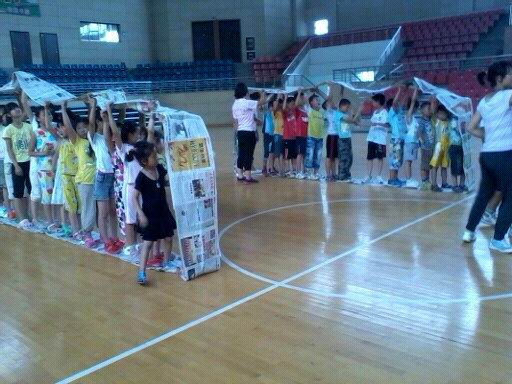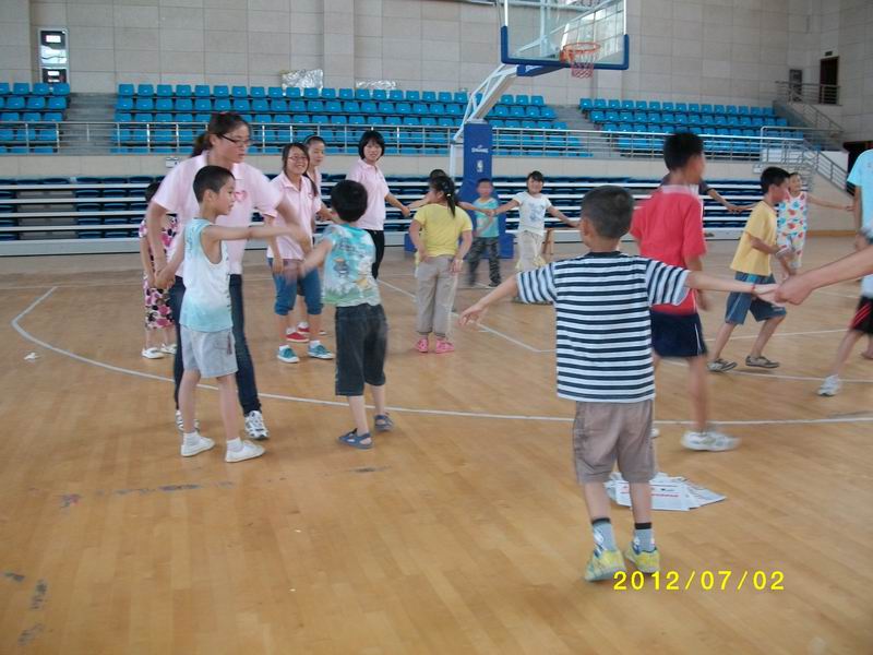 因天气炎热,主要带同学们参观了公司的体育馆,看到木地板的篮球馆、塑胶跑道的室内田径馆、pu质地的羽毛球馆、排球馆以及齐备的健身器材,孩子们兴奋不已。参观完体育馆后,在服务队志愿者的带领下,同学们还进行了“猫和老鼠”和“无敌风火轮”两项素质拓展游戏。在“猫和老鼠”游戏中,要求各位同学在游戏过程中要明确自己的位置,同时遇事要灵活多变。而“无敌风火轮”游戏的主要意义在于培养同学们的全局意识,培养系统思考、计划和组织能力,认识到团队合作的意义,让同学们在生活中学会竞争与合作,学会理解与总结。