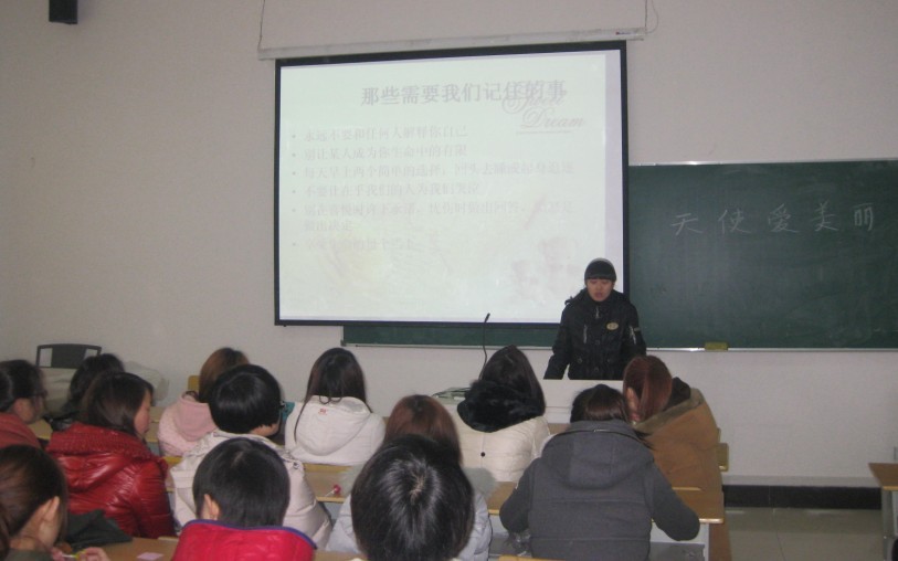3月9号下午,以“天使爱美丽”为主题的女性知识讲座在体育馆多媒体教室举行。讲座吸引了来自公司不同年级不同专业的女生参加,此次讲座共涉及到美体、护肤、气质、修养等多方面的内容,使女生们在健康礼仪等知识方面获得很大收益。讲座最后,大家还在彩色的心愿纸上,写下了自己的节日愿望,并投入心愿盒当中,期待着自己的节日愿望能够实现。本次讲座为公司女生创造了一个很好的交流和学习的机会,得到了公司广大女生的喜爱和好评。