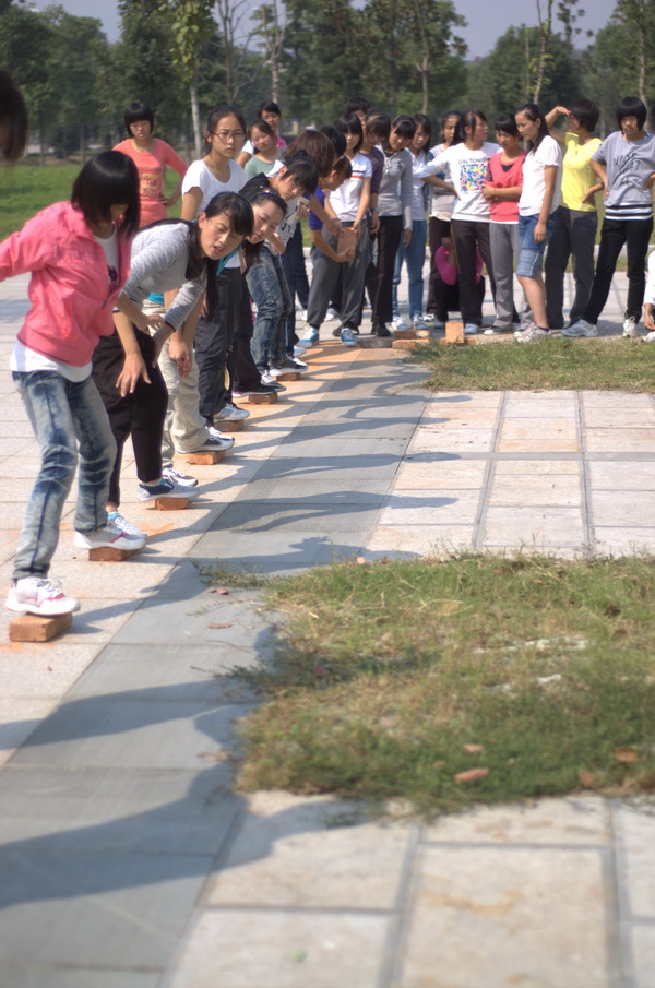 上午8点训练活动开始。在进行简短的队列调整和训练之后,培训师张书军老师向参训同学指出了拓展训练的意义与重要性,并对同学们提出了相关要求。本次拓展训练共有四项培训内容,分别是硫酸河、雷阵、信任背摔和盲人接阵。每个项目都包括体验、分享、交流、整合和应用这五个环节,让参加者自己去发现、归纳体验过程中提供的知识,达到自我教育的目的。在四项任务中,硫酸河的任务难度最大,在有限的时间里让全体同学安全通过硫酸河需要正确的决策、团体的协作和迅速的反应,虽然有的团队因为协作不够合理,一名同学都没能通过,在过程中,部分同学还因为意见不一致出现激烈的争执,但经过体验后的分享和交流,大家都能够心平气和的去讨论刚才活动中的不足和自己的感受,也增进了彼此的交流和了解。活动中,呼声最高的当属信任背摔,这个项目在素质拓展训练中属于传统的经典项目,很多同学在之前都有所了解,但面对亲身体验,大家还是兴奋不已,在确保安全的前提下,各组都有条不紊的进行。活动最后,同学们纷纷踊跃表达了自己对训练的理解,大家一致认为活动给同学们带来欢乐的同时,也达到了素质拓展的目的。