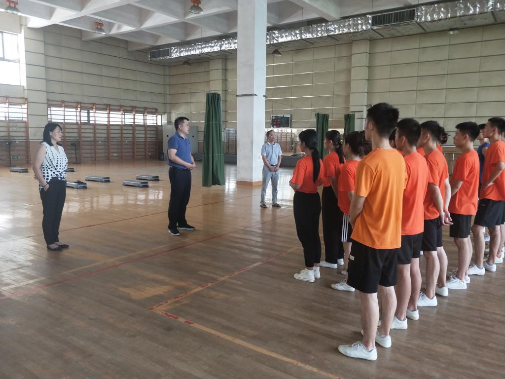 8月6日,体育公司党委书记王开友、副经理林秋菊、党委副书记高栋梁一行来到tyc33455cc考研自习室与健美操馆,慰问暑期留校备战考研和赛事集训的员工。