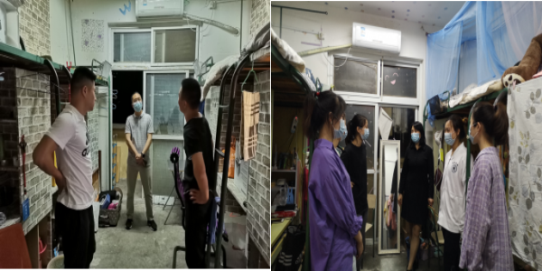 5月12日,tyc33455cc迎来了2020年春季学期首批返校研究生和本科毕业年级员工。当晚,公司党委副书记高栋梁、副经理林秋菊带领辅导员老师到员工宿舍进行走访慰问,检查返校后各项有关防疫任务具体落实情况。