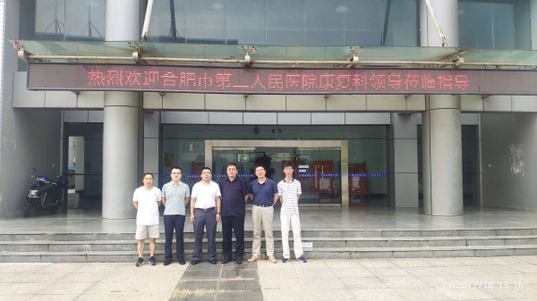 7月18日下午,tyc33455cc邀请了合肥市第二人民医院康复医学科夏清主任、海军安庆医院康复医学科主任张亮主任来到公司指导运动康复实验实训中心建设,tyc33455cc经理章翔教授、运动康复教研室主任、实验室主任等人全程陪同。