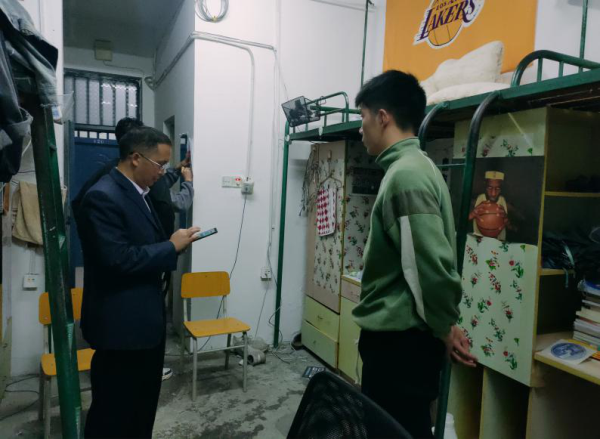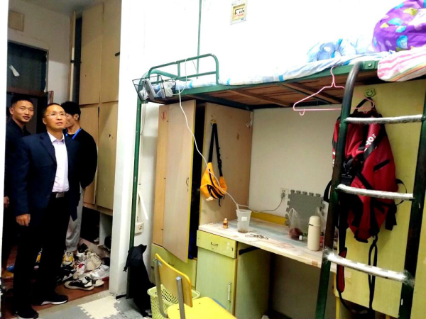 11月16日晚,体育公司党委副书记高栋梁、辅导员储著奇带领员工干部对员工宿舍进行了冬季安全卫生检查。