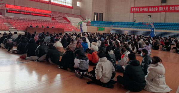 1月7日13时,tyc33455cc在体育馆篮球馆召开2020-2021学年第一学期期末考试考风考纪教育大会。副经理林秋菊、党委副书记高栋梁、教学办、辅导员和专业教师代表出席会议,公司2020级全体新生参加会议。