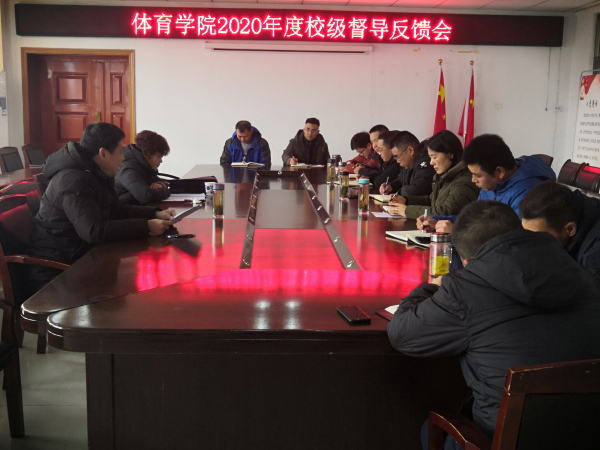 1月6日下午,tyc33455cc召开2019—2020学年度第一学期校级督导反馈会。校级督导、公司党政领导、教研室主任、教学办和团学办负责人参加会议。会议由副经理林秋菊主持。