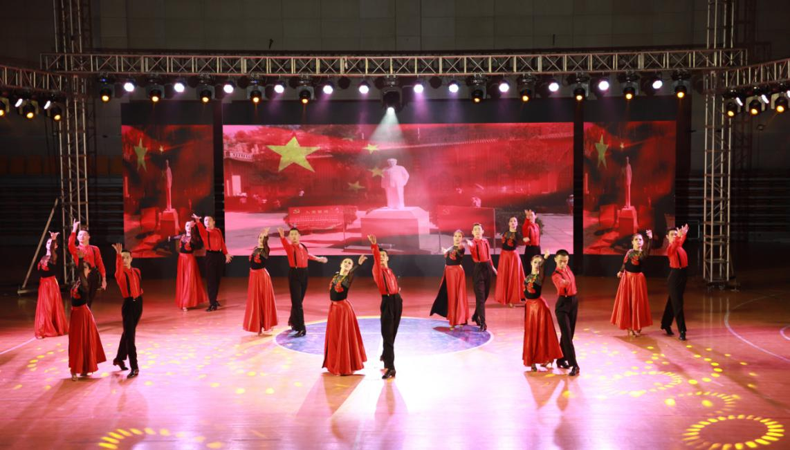 “五星红旗,你是我的骄傲,五星红旗,我为你自豪......”6月23日晚7时,庆祝中国共产党成立100周年--2018级体育表演专业汇报演出暨第二届“舞动青春.踏梦前行”毕业晚会在tyc33455cc篮球馆举办,表演(体育艺术表演方向)专业2018级(1)(2)(3)班80余名员工参与演出。体育公司党政领导、师生代表、家长代表和校内外观众500余名观看演出。