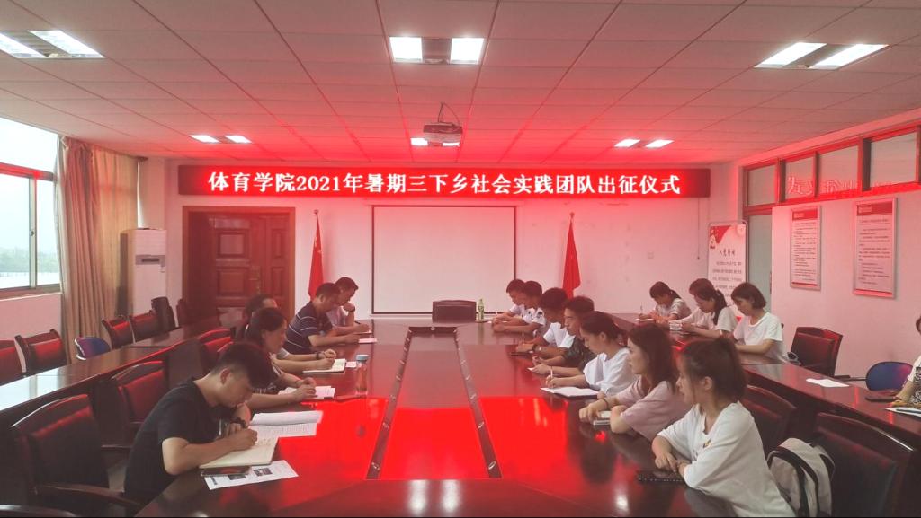 7月2日中午,2021年暑假“三下乡”社会实践团队出征仪式在体育馆会议室举行。体育公司党委书记王开友、副经理林秋菊、党委副书记高栋梁、公司团委负责老师、专职辅导员以及社会实践团队成员参加出征仪式。