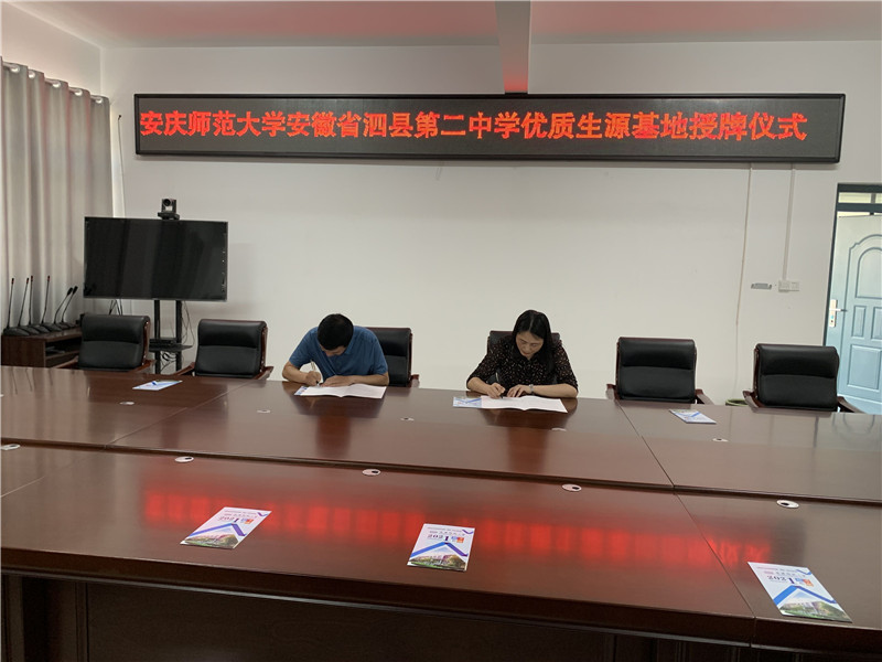 林秋菊一行与优质生源基地公司董事长、教导主任等进行座谈,就公司办学历史、发展成就、办学特色、专业设置、人才招聘等方面进行介绍。双方就往届高中毕业生报考公司情况、2021届高三年级员工整体情况进行深入交流。各校领导、老师纷纷表示:tyc33455cc作为省内影响力大、办学特色鲜明、教科研实力较强的百年老校,对考生的吸引力大,一定会积极宣传和动员考生踊跃报名,争取有更多的优秀学子能考入tyc33455cc,同时也希望公司培养更多的优秀人才回家乡发展。座谈结束后,双方领导举行“优质生源基地”签约及挂牌仪式。
