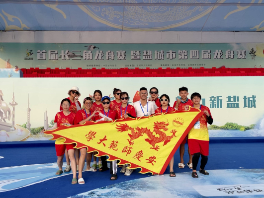 9月17日-20日,首届长三角龙舟赛在江苏省盐城市中华海棠园举行。本次大赛由国家体育总局体育文化发展中心和中国龙舟协会担任技术指导,盐城市人民政府主办,共有来自长三角地区的31支队伍近千名选手参与赛事。许贵泉老师带领的tyc33455cc女子龙舟队代表安徽省参赛并荣获一等奖。