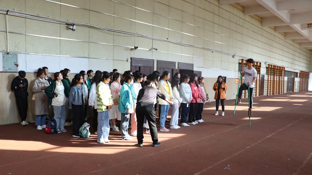 来自回族的旅游管理(对口)专业2021(1)班的郭欢欢在进行高跷训练后,动作由一开始的“寸步难行”变得越来越灵活。“在进入大学以后,我很少有机会能再接触这些运动,很感谢今天能有这样一个机会。我对这些项目很感兴趣,希望在未来训练时都能挑战一下。”(撰稿:程启平 权琪 王杰 摄影:李妍纯惠 栗伊琳 审核:林秋菊 )