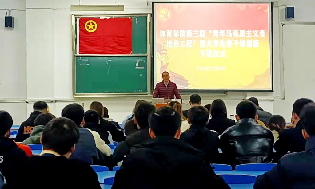 会上,团委负责老师宣读了第三期青年马克思主义者培训实施方案和培训班规章制度。学员代表2020级体表2班周欣平同学上台发言。