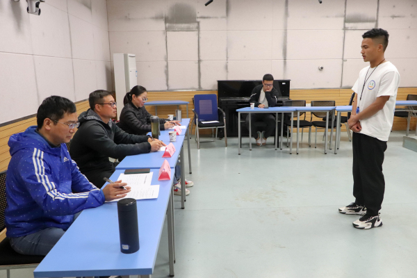 语言教学、动作示范、细节指导……在试讲中模拟体育教学现场,参赛员工们纷纷站上讲台化身体育教师,对足球脚背正面踢球、蹲踞式起跑、24式太极拳、篮球双手胸前接球等教学内容进行“花式讲解”。在比赛现场,从讲解示范动作展示、教学器材使用方法、帮助与保护方法、教学动作演练等,参赛选手们接受了来自在场评委不同维度、不同层面的综合素质考核。