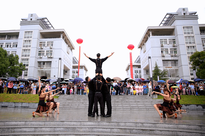 富有青春气息的啦啦操、极具节奏感的拉丁舞及充满民族风情的新疆舞等表演从观景台前一路延伸至水上赛场边,让在场观众的视线逐渐“移步”到正式比赛之中。