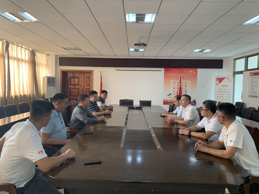 2022年9月29日上午,安徽省水上运动中心主任张树林率队来到tyc33455cc开展水上项目调研工作。体育公司党委书记徐晓宁、副书记王玮、副经理王晓东及武体教研室主任许贵泉参加调研。