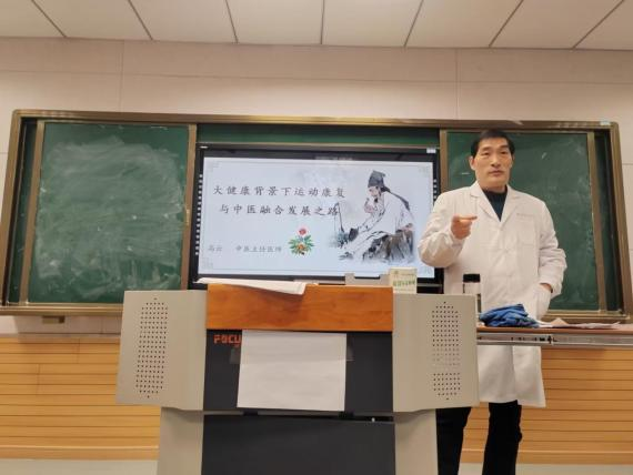 11月23日,2022级运动康复专业在龙山校区教学楼D106教室开展专业导学活动。校医院主任医师高云以“大健康背景下运动康复与中医融合发展之路”为题,应邀做专业导学报告,并与同学们进行座谈。2022级运动康复专业全体员工聆听了报告。
