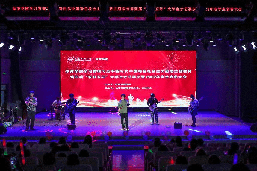伦巴、恰恰、竞技健美操轮番上场,伴随着绚丽的灯光,表演人员的舞蹈节奏根据歌曲的切换快速变化,来自2022级体育表演专业(1)班的舞蹈《燃》点燃了全场的气氛,观众们纷纷挥舞起手中的光灯,为他们欢呼。