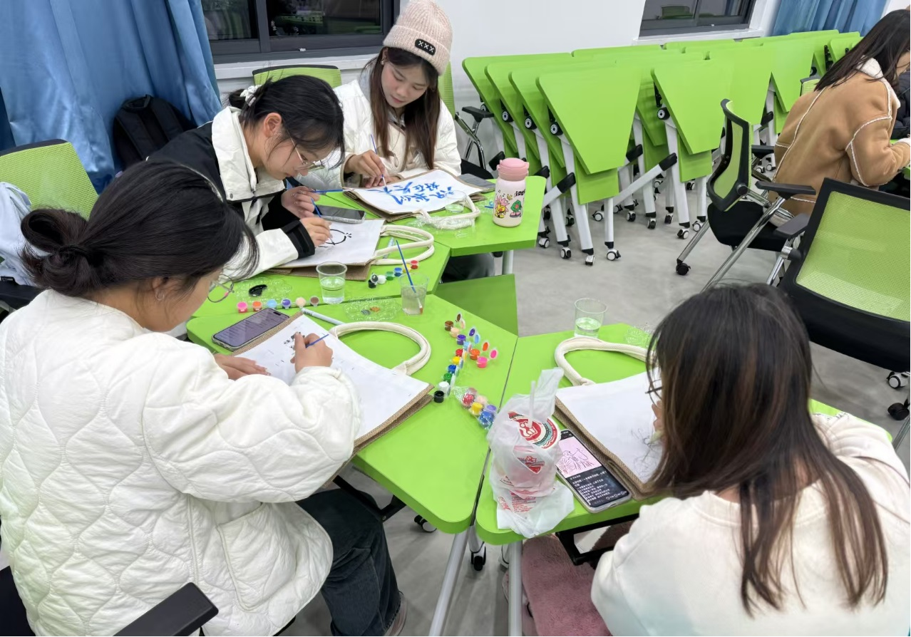 挑选白色帆布包,购置手绘丙烯材料,提前预约活动场地……为了确保员工能够在活动中深入体验艺术创作的乐趣,找寻心灵的栖息之所,活动负责人、表演(体育艺术表演方向)专业2023(3)班朱丝雨提前数周进行活动策划和物资准备。“手绘帆布包不仅是一个创意表达的平台,更是一个情绪释放的窗口。”她直言,希望通过活动让员工们在安全轻松的环境中觉察情绪,在画布上找到心灵的出口。