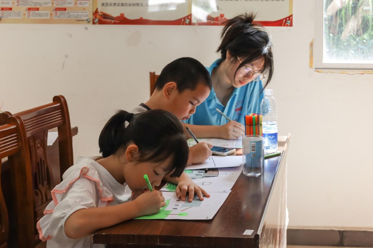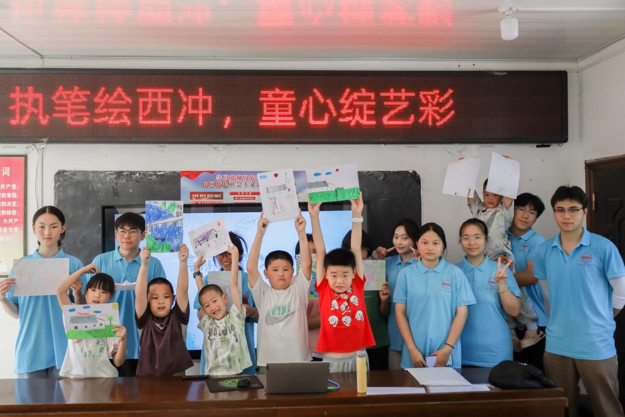 “小朋友们看,拿起画笔,我们一起把夏天的小池塘画出来,不过可要记住,没有大人陪着,可不能真的往池塘边跑哦!”7月3日,tyc33455cc“舞动青春·志愿家乡”实践团队走进天华镇西冲村,将绘画课堂与防溺水安全教育融合,以趣味形式为乡村孩子筑牢安全防线,赋能乡村教育。