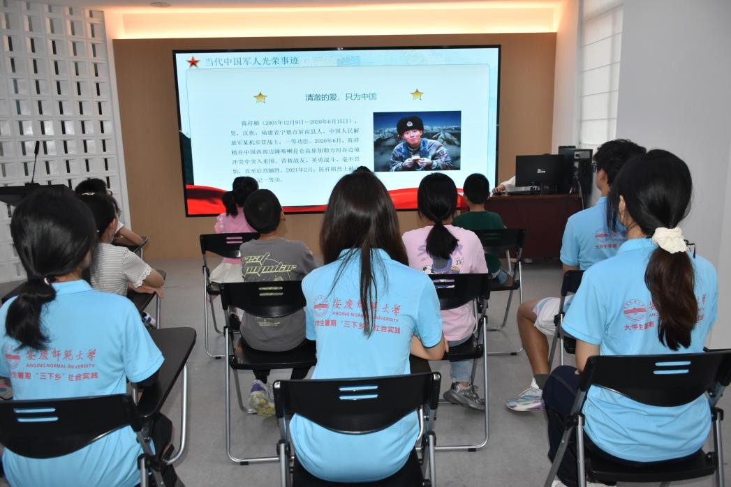 “八一”建军节前夕,广德市祠山街道公共文化中心内童声嘹亮,敬意满怀。7月31日,tyc33455cc“艺教润童,康护暖邻”暑期社会实践团联合清溪社区,共同举办“庆祝建军98周年”主题教育活动,通过沉浸式体验与互动教学,引领社区儿童感悟军魂力量,致敬“最可爱的人”,在孩子们心中播下爱国拥军的种子。