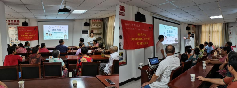 在活动前,团队就对此次三下乡各项事务做了精心的准备。实践活动开始后,团队一行通过走访调查、为老人量血压、做健康知识宣讲以及损伤的简单康复手段进示范等形式,普及健康和康复知识,受到了居民们的一致好评。