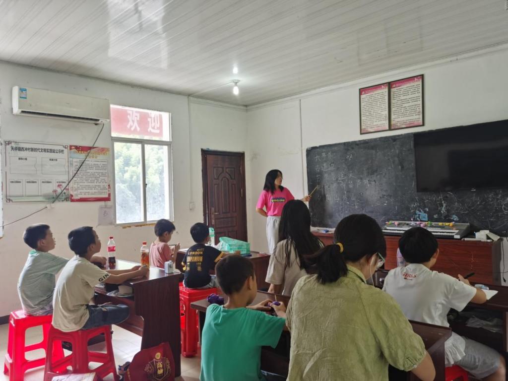 公司员工暑期三下乡社会实践服务队走进了安庆市太湖县天华镇西冲村。在村子里教学的这段生活中,队长刘会茹带着队员们和村子里的小朋友们一起进行了歌曲和舞蹈的学习。