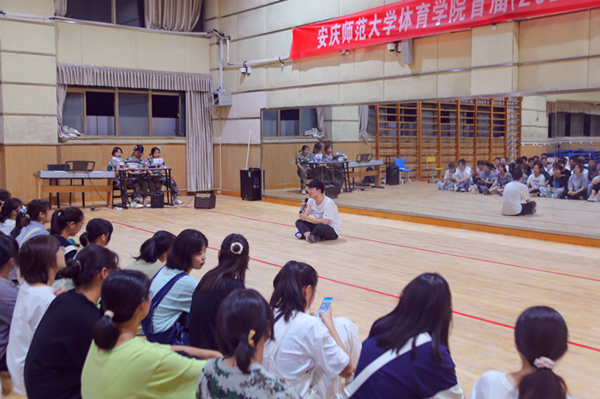 此次联欢晚会分为老生致辞和新生才艺表演两个环节。在老生代表致辞环节,2018级运动康复专业王仲宇、传媒公司2021届毕业生马少君、吴慧分就新同学关心的大学学习和生活方式,分享了经验,交流了看法。在新生才艺表演环节,各班派1名员工代表主持了晚会,会上共演绎了器乐,朗诵、合唱,相声等20个节目。