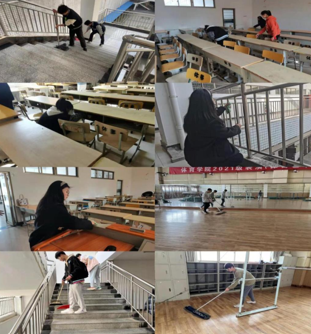 “同学们本着为公司打造一个更加清洁、舒适的环境的想法,在此次活动中表现都非常积极。”活动负责人体育教育专业2019(3)班的雷军杰介绍,参与其中的同学们在馆内“忙上忙下”、相互借力、默契配合,既有序又高效地完成了工作。