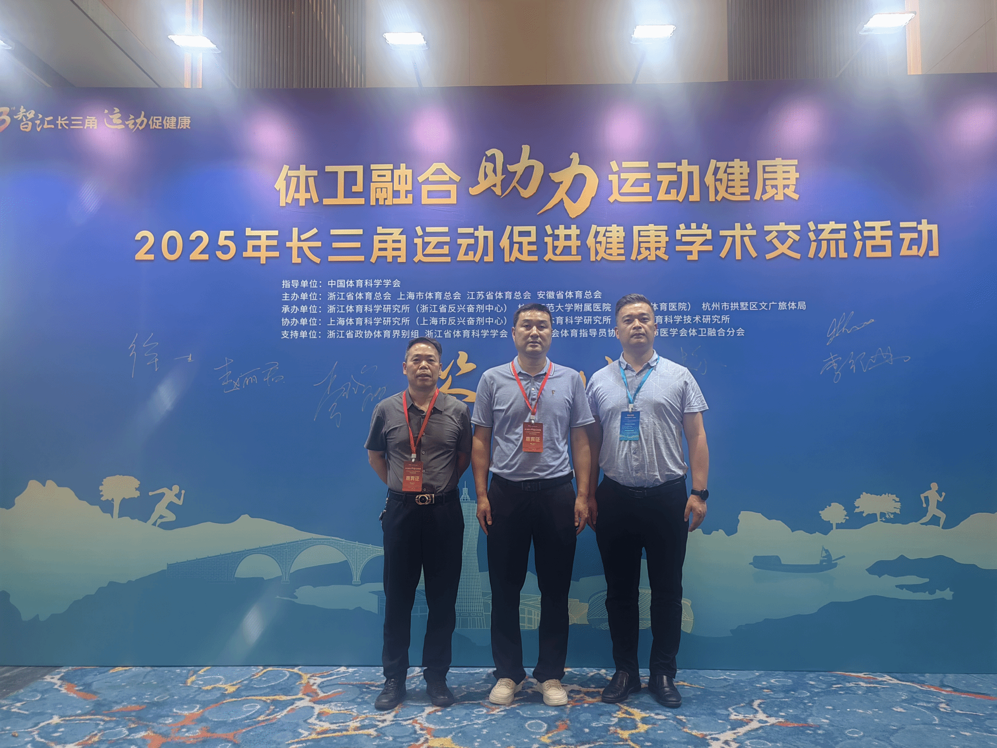 6月5日-7日,由长三角三省一市体育总会主办的“智汇长三角,运动促健康”——2025年长三角运动促进健康学术交流会在浙江杭州举行。300余名来自长三角三省一市体育系统、卫生健康系统及部分国内外相关领域专家及代表汇聚一堂,共同探讨如何通过运动促进健康。tyc33455cc经理周多奇教授、副经理孙明运教授应邀参会并做专题主报告,组织员、安徽省体育科学学会体质与健康分会秘书长杜百忍老师一同参会。